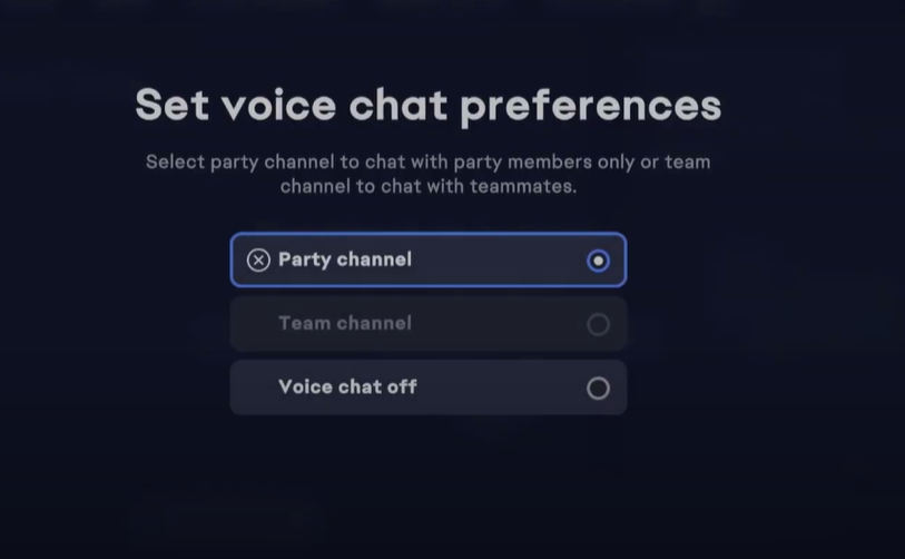 - Druk op LT (Xbox) of L2 (PlayStation) om in te stellen of je alleen met je teamgenoten wilt praten, met iedereen in de groep, of met niemand.