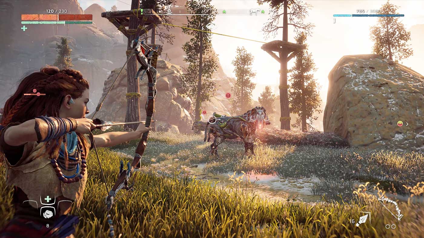 In Horizon Zero Dawn speel je als Aloy, een jager in een post-apocalyptische wereld waarin mechanische wezens rondlopen. Terwijl Aloy op zoek gaat naar haar herkomst, vecht je tegen allerlei vijanden, voltooi je opdrachten en leer je andere personages kennen.