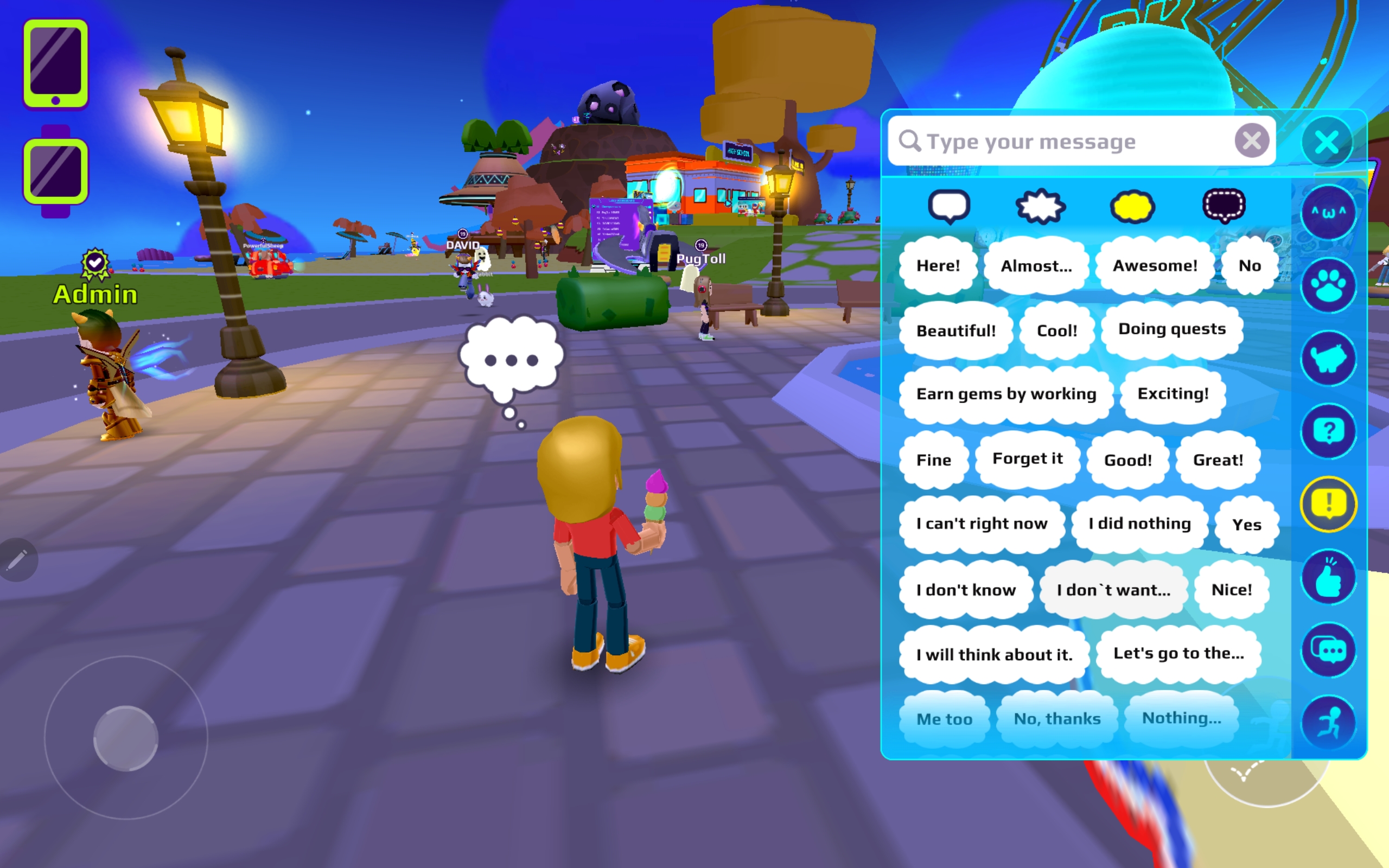 De virtuele wereld van PK XD is kleurrijk en overzichtelijk. Spelers maken een poppetje (een avatar) en krijgen een huisje om naar wens in te richten. Andere spelers kunnen jouw huis bezoeken.